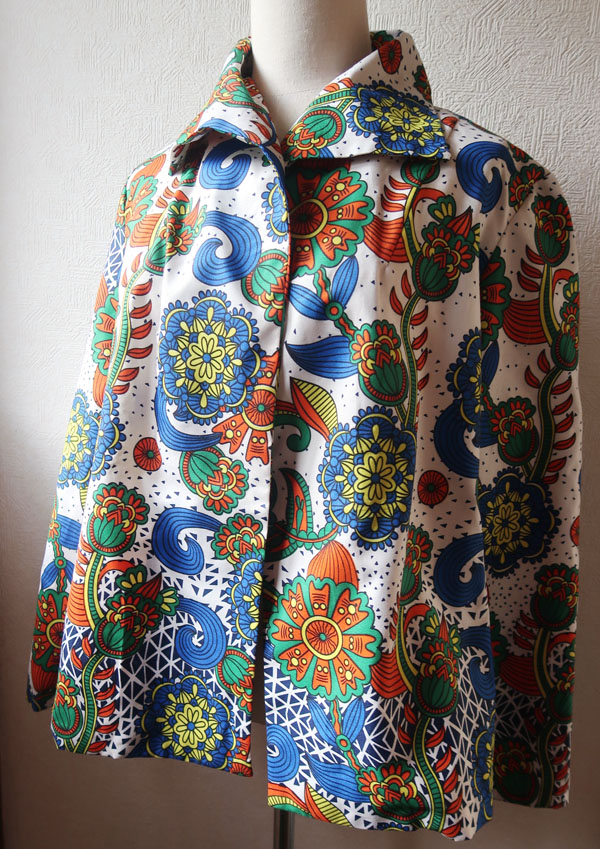 ナイジェリア布はこの頃5ヤード購入のためワンピースを縫った後の布でジャケット作り。同布のワンピースに合わせるとしつこくなるのでこれはこれでの着用。9/23完成。 |