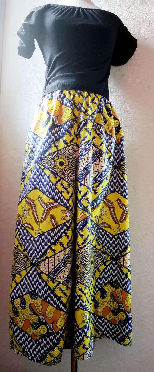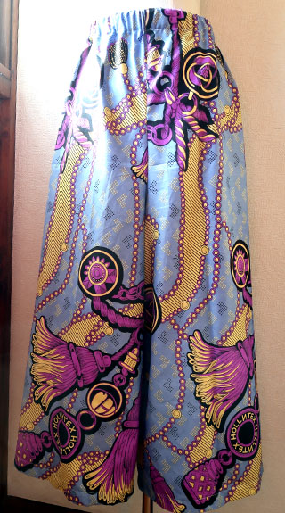 Mさんから頼まれたアンカラタモ布ワイドパンツ、青い薔薇 |
