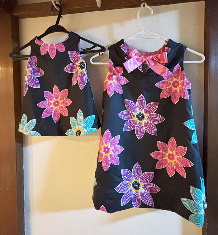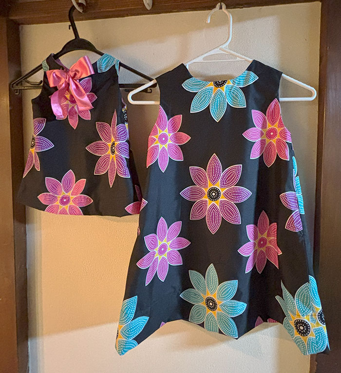 タイ・ラオス旅行から戻ってすぐ母娘3点のオーダー。アンカラ布1ロール492cmで3点。まず子ども優先でカットしていったら、意外と残り、本人の意向になかったカシュクール作る。それにしてもカシュクールワンピース、ポケット付けたらさらに時間かかる。