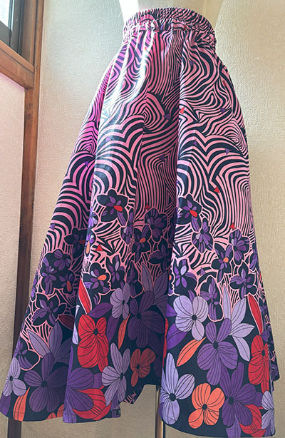 ピンク紫花柄変形六角形サーキュラースカートを作った。