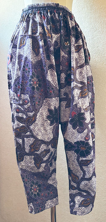 ベトナム布2点のうちのパープルはワイドパンツに。