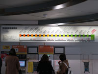改札の前に、インフォメーション用の筒状のブース、役目がないためか活動しておらず