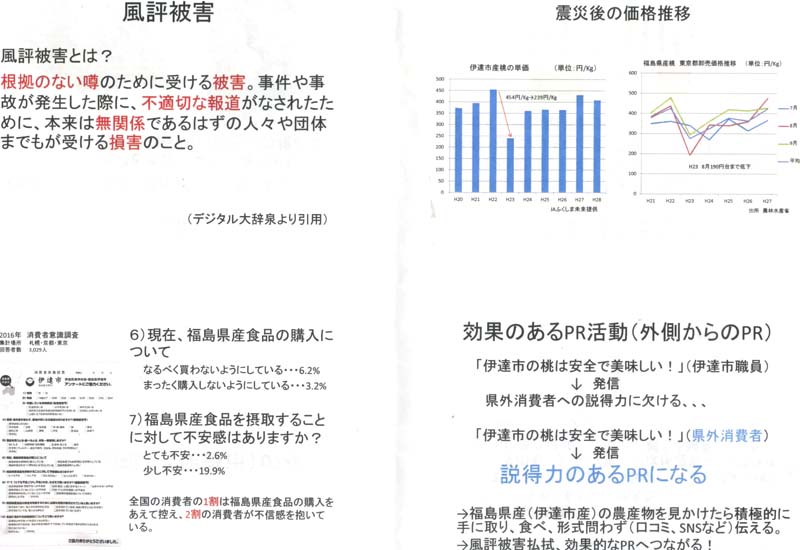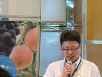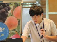 伊達市産業部農政課農業振興係主事 佐藤聡太氏のプレゼンは「震災後の伊達市の桃」