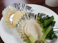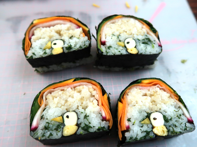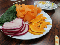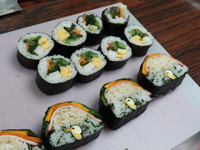 今日は野菜ソムリエ コミュニティTOKYO「東京産野菜たっぷり中太巻き&飾り巻き寿司講座」へ。 東京産のお米、江戸東京野菜を使った巻き寿司ですが、ひとつは貴重な江戸東京野菜を塩漬けや胡麻和えにしたものの中太巻き、ひとつは巻寿司特任大使八幡名子先生が八王子澤井農場での体験を描いた合鴨と虹の巻き寿司…、お寿司がキャンパス状態でした。三軒茶屋で八百屋を営む森田さんの漬物高倉ダイコン糠漬け!(悶絶のおいしさ)とカブの柚子塩漬けも。お世話になりました。持ち帰り、今日の夕飯となりました。
