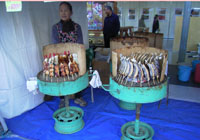 鮎焼きもおいしそう。たくさん焼ける鮎焼きですな。回転するのかな。