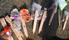 ぶせます。頼りなげ・・・。雨が降らず土が流れ出さないのか心配。ネギも植え付け完了!ねぎってこんなふうに植え付けるのですね。 |