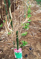 ←こちらは「電光30日絹莢」。緑の横の茶色の枯れ枝は霜よけです。