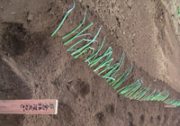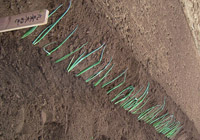 斜面部分にネギを立たせるように置いていきます。根っこに土をか